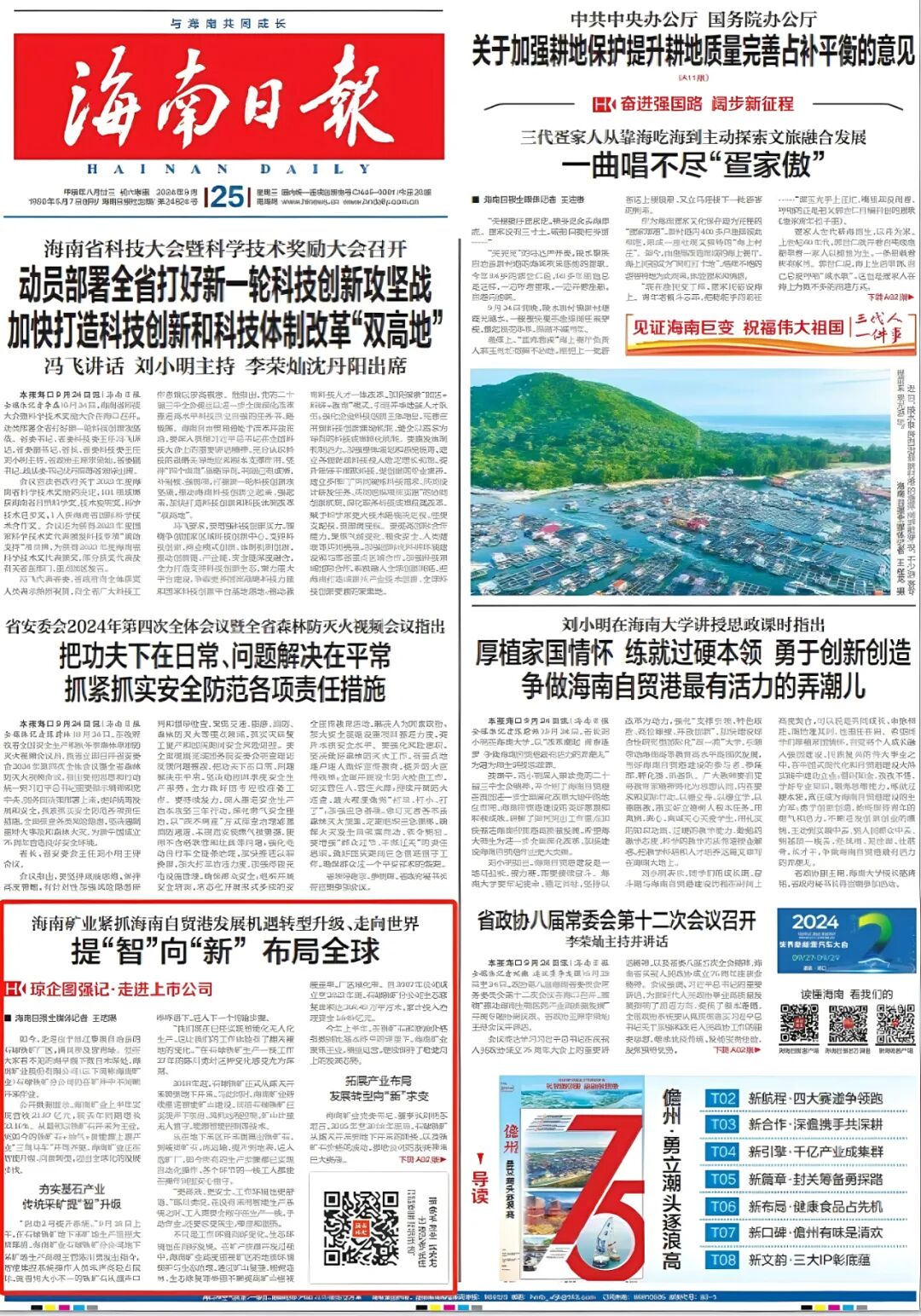 9月25日,海南日報頭版推出《海南礦業(yè)緊抓海南自貿(mào)港發(fā)展機遇轉(zhuǎn)型升級、走向世界 提“智”向“新” 布局全球》專題文章;官方公眾號推出《上半年營收21.87億元!海南這家公司是如何做到的?》,以“視頻+文字”全面報道海礦的全球化發(fā)展之路。